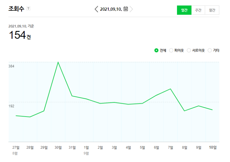 없을 땐 최소 50명 대도 나오기도 해요. 네이버 검색량의 절반 수준입니다.